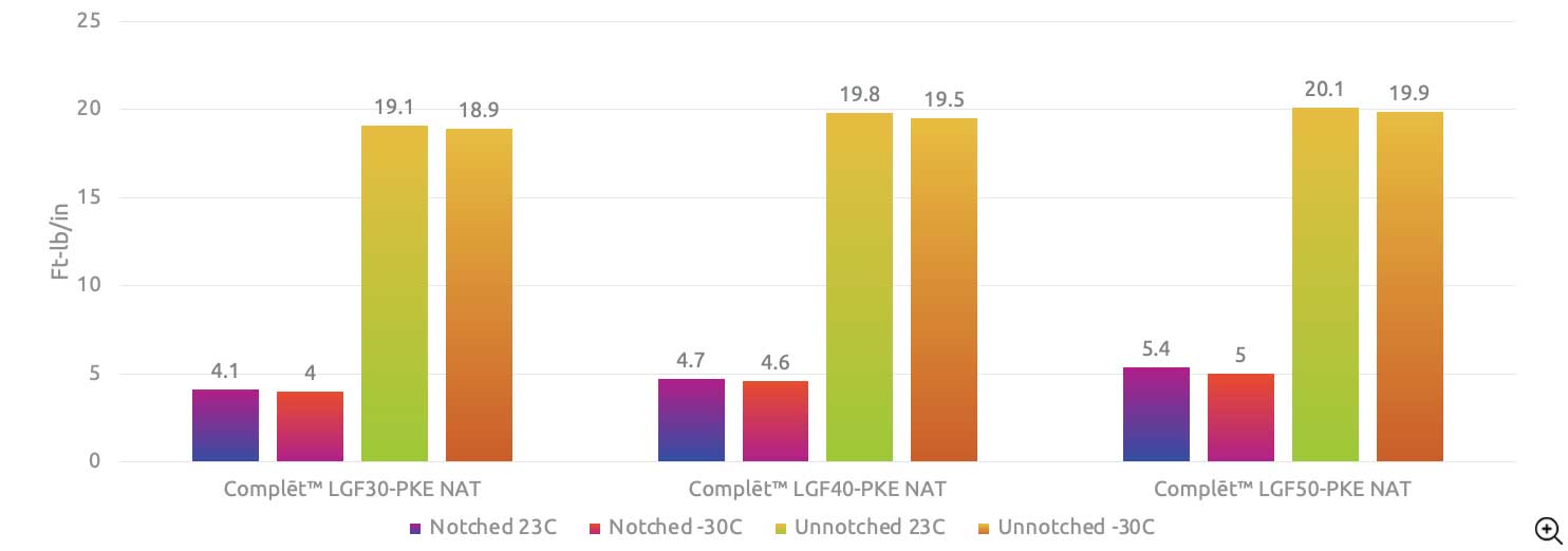 These formulations also offer over 2x higher impact properties than short fiber reinforced, polyketone solutions and, further, maintain impact properties in cold and demanding environments making them ideal candidates for outdoor applications.